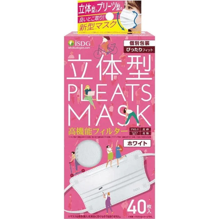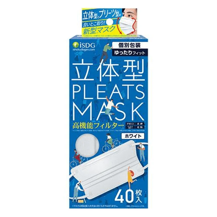 The product name and [the content and the unit]: 医食同源 立体型プリーツマスク ぴったりフィット(ホワイト) 40枚入 Food and Medicine Homology 3D Pleated Mask Perfect Fit (White) [40 sheets]