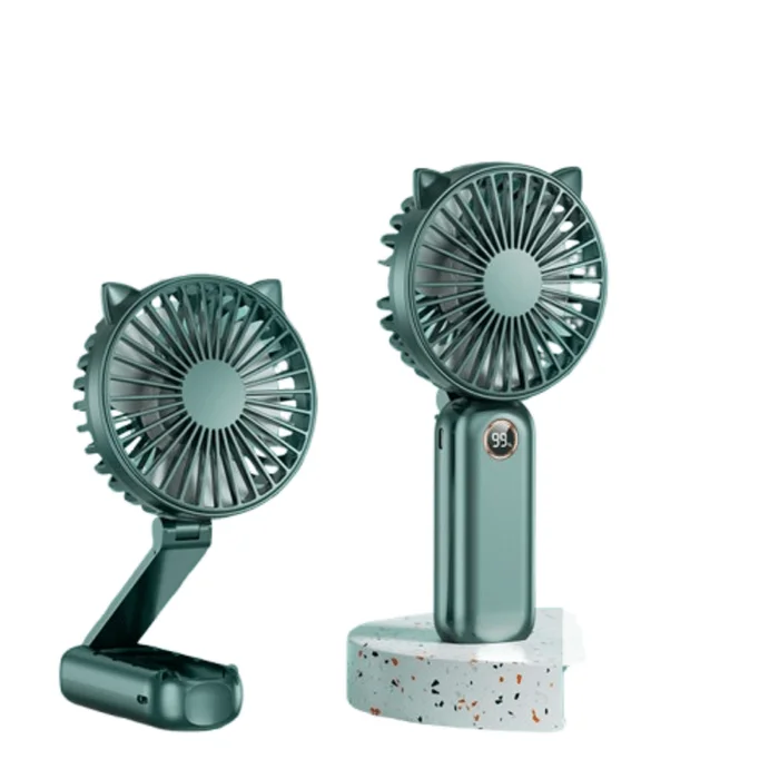 Usb handheld fan mini portable small fan digital display folding small electric fan dark night green 1 pcs.