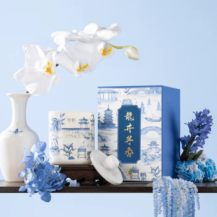 West Lake Ten Scenes Longjing Series Scented Candle Blue and White Porcelain Fragrance Natural Soy Wax 200g