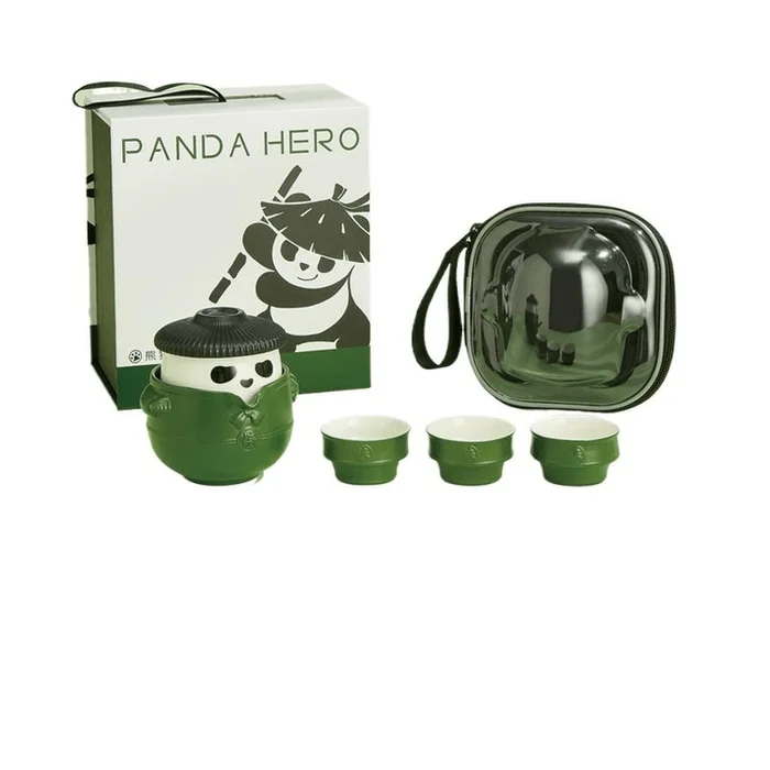 White Room Panda Kung Fu Tea Set Chinese Portable Anti Scalding Tea Pot, Three Cups Bamboo Green Tea Cup, 5cm
