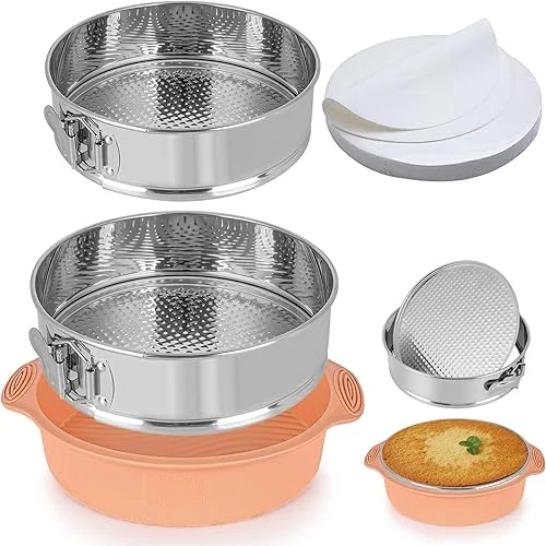 7 Inch & 9 Inch Nonstick Cheesecake Pan Springform Pan Sets for Baking, 304 Stainless Steel Round Cake Pans with Silicone Pan Protector & 50PCS Parchment Paper, Removable Bottom & Dishwasher Safe