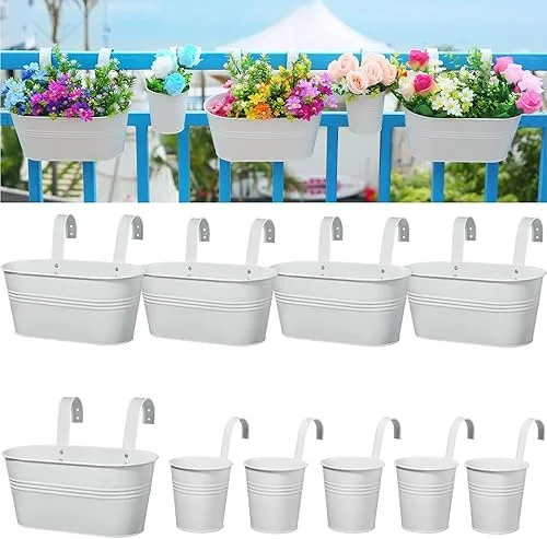 10 Pcs Hanging Planter Railing Planter Box Metal Iron Window Boxes Planters for Outdoor Plants Balcony Planter Fence Planters with Detachable Hooks for Herb Garden Planter Outdoor (Matte White10)