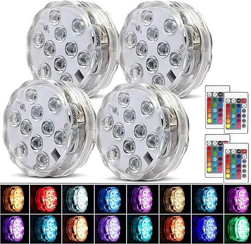 [4-Pack] Submersible LED Lights with Remote Control, 16 Colors Changing Waterproof LED Tea Lights, Pool lamp Battery Operated Underwater Pond Lights for Aquarium Garden Wedding Party, White (YFY2201)