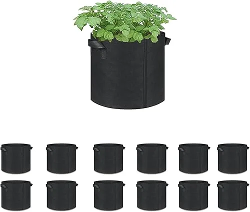 12-Pack 5 Gallon Thickened Non-Woven Grow Bags, Aeration Fabric Pots with Handles