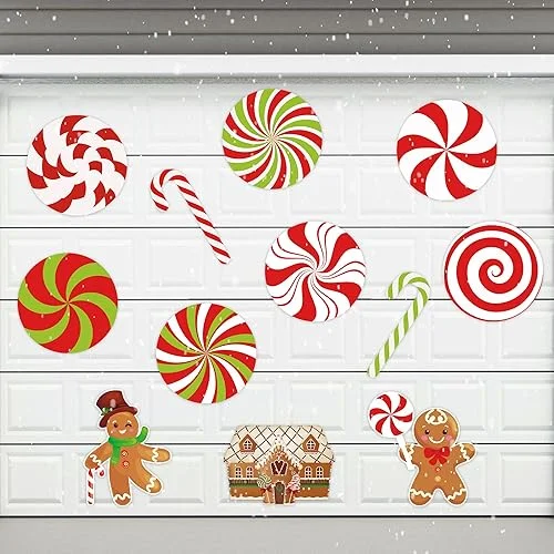 12 PCS Christmas Garage Door Magnets Decorations Christmas Candy Car Magnetic Stickers Large Colorful Candy Gingerbread with Lines Garage Magnet Decals for Car Refrigerator Xmas Party Supplies