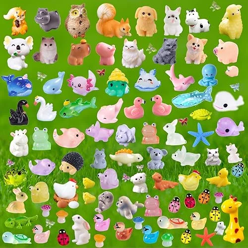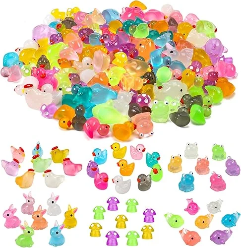 150 Pcs Luminous Mini Resin Animal, Tiny Animals Figures to Hide Miniature Figurines Glow in Dark Mini Ducks Chicks Frogs Landscape Dollhouse Fairy Garden Accessories