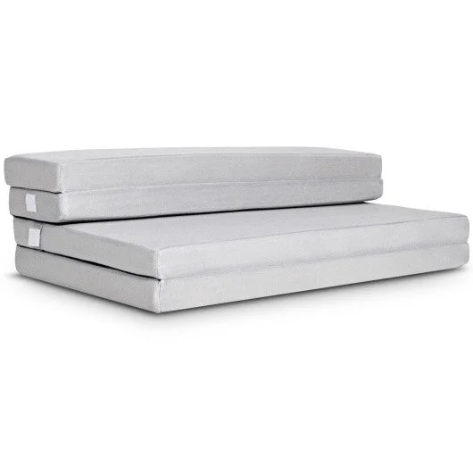 4 Inch Folding Sofa Bed Foam Mattress with Handles-Queen Size