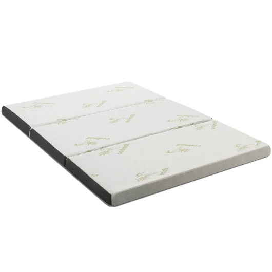 Queen 3 Inch Tri-fold Memory Foam Floor Mattress Topper Portable with Carrying Bag-M