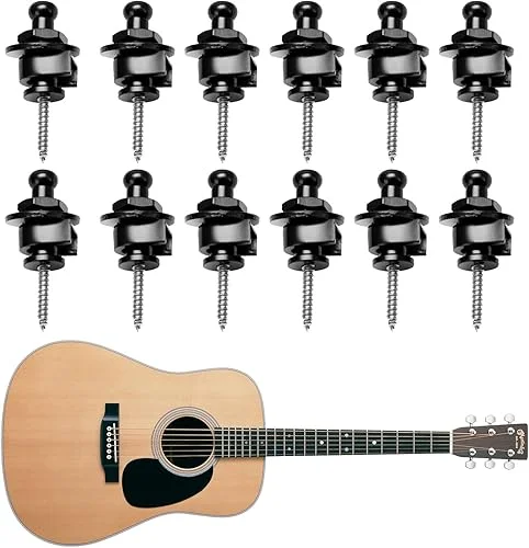 12Pcs Strap Locks Guitar, Metal Guitar Strap Locks and Buttons, Metal Heavy Duty Guitar Straplocks Replacement Button Security Straplock for Classical Acoustic Electric Guitar Bass