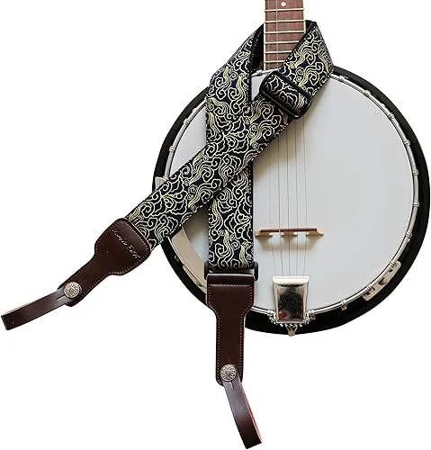 2 inch width (5cm), Padded, Vintage Ukiyoe Style’Auspicious Cloud’ Soft Muslin & Genuine Leather Delux Banjo Strap, With 2 pieces of MUSIC FIRST Leather Strap Locker.