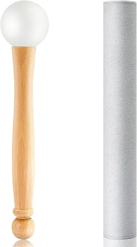 2 Pieces Singing Bowl Mallet Set, Suede Striker Solid and Hollow Sound Bowl Stick, Crystal Singing Bowl Rubber Mallet with Wood Handle for Playing Singing Bowl