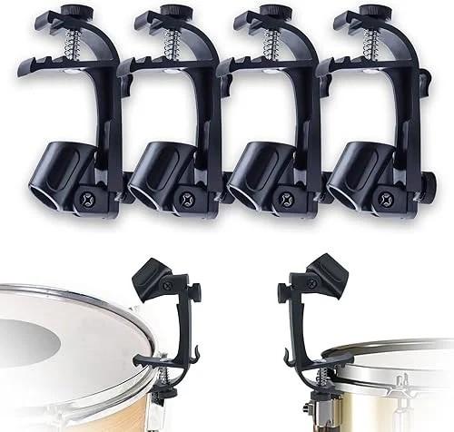 4 Pcs Drum Microphone Clip, Adjustable Drum Mic Clip with 180 Degrees Rotation Mic Holder, Shockproof Clips on Drum Mount for Professional Drum Recording