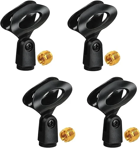 5 Core Mic Clips for Stands 4Pcs Microphone Clip Holder Universal Adjustable with 5/8′ Male to 3/8′ Female Screw Adapter Suitable for Handheld Microphones 4-Pack MC 03 4PCS