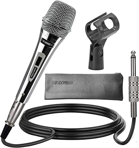 5 CORE Professional Dynamic Vocal Microphone Neodymium Cardioid Unidirectional Handheld Mic for Singing Karaoke Steel Mesh Grille Metal Body with ON Off Switch + 16ft Detachable Cable + Clip + Bag