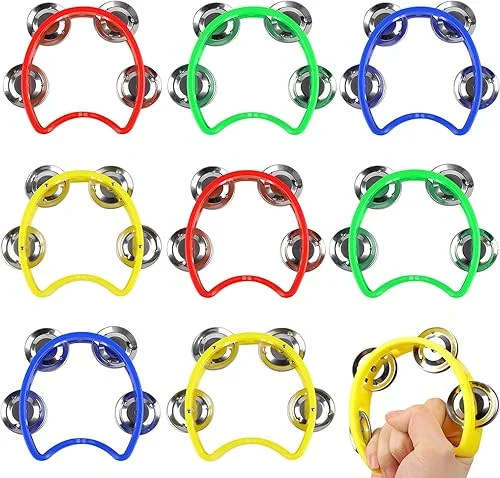 8 Pack Plastic Percussion Tambourine Hand Tambourine Bells, Mini Percussion Tambourines Bulk Hand Held Percussion Drum Musical Rhythm Instrument for Adults Kids Party Supplies(4 Colors)