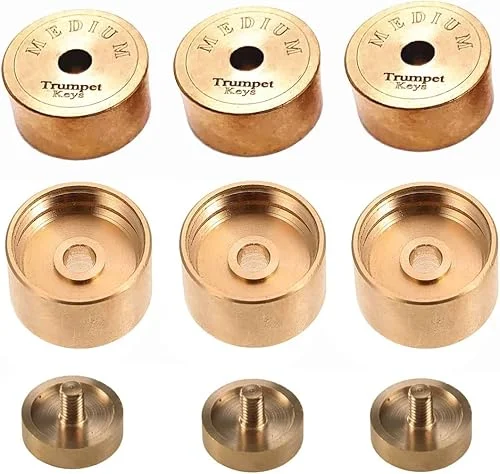 9pcs Trumpet Trim Kit Bach Trumpet Bottom Valve Cap Weighted for Improving the Sound MEDIUM, Raw Brass