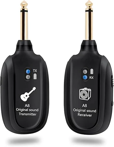 A8 Wireless Guitar Transmitter Receiver System – 2.4GHz Rechargeable, 24-bit/48KHz Audio, Low Latency 4ms for Electric Guitar & Bass – Clean Wireless Audio for MUSIC and BASS GUITARS