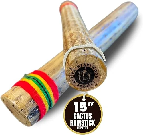 Africa Heartwood Project 15′ Cactus Rainstick from Chile – Authentic Handcrafted Rain Stick Musical Instrument with Rasta Yarn Wrap and Durable Sealant