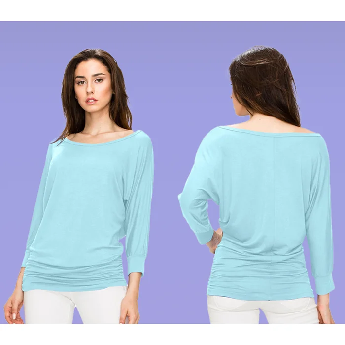 Women's Crew Neck 3/4 Sleeve Drape Dolman Top with Side Shirring
