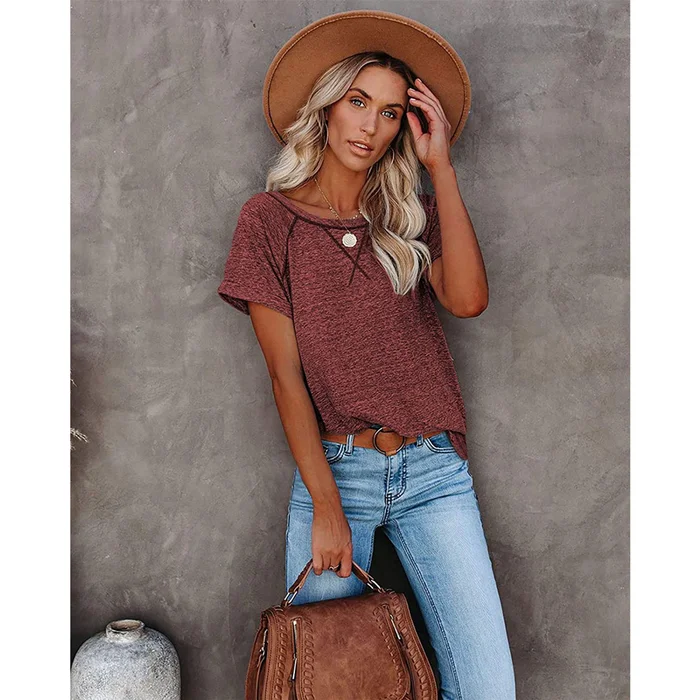 Women's Cross Stitch Contrast Raglan Short Sleeve T-shirt