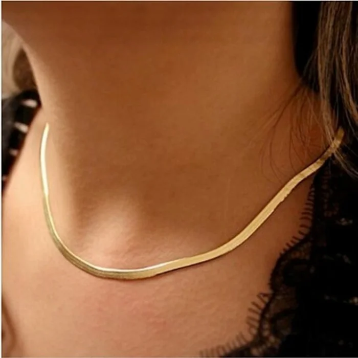 14K Gold-Plated Solid 925 Sterling Silver Herringbone Chain Necklace