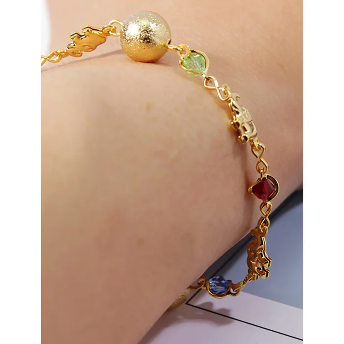 18K-Gold-Filled Multi-Color Lucky Elephant Ball Anklet