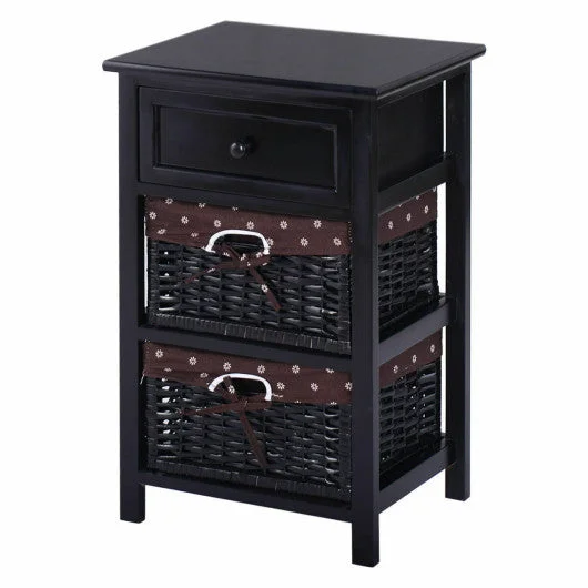 3 Drawers Nightstand with Solid Wood Legs for Living Room Bedroom-Black