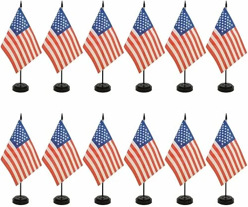 12 Pack American Desk Flags Set USA Small Mini Table Office US Miniature Desktop Flag Home Office Decoration