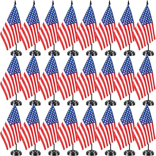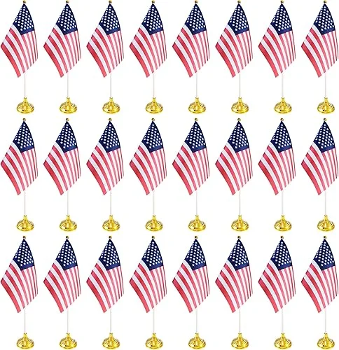 24 Pack USA US Desk Flags,Small Mini American Deluxe Table Flags Set with Stand Base,8.2 x 5.5 inches Miniature Desktop Flag