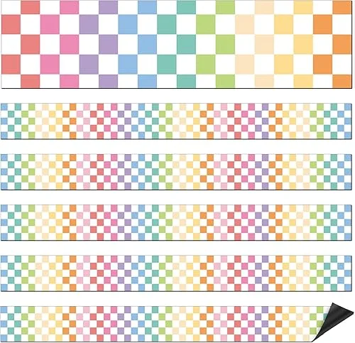 24 Pcs Magnetic Borders for Classroom Whiteboard Magnetic Strips Bulletin Board Borders School Classroom Chalkboard Trim Decorations for School Teacher Decorations (Pastel Checkerboard)