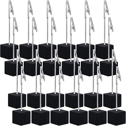 24 Pcs Wooden Memo Clips Holder Lightweight Wood Cube Base with Alligator Clip Clasp Mini Photo Holder Clip Menu Holder for Displaying Number Card (Black)