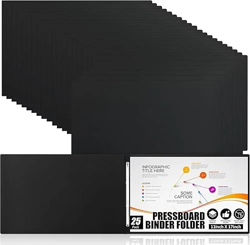 25 Pcs 11×17 Inch Pressboard Report Cover, 3′ Capacity Presentation Binder Folder with Metal Prong Paper Fastener to Neatly Bind Reports, Proposals, Transcripts, Other Documents (Black)
