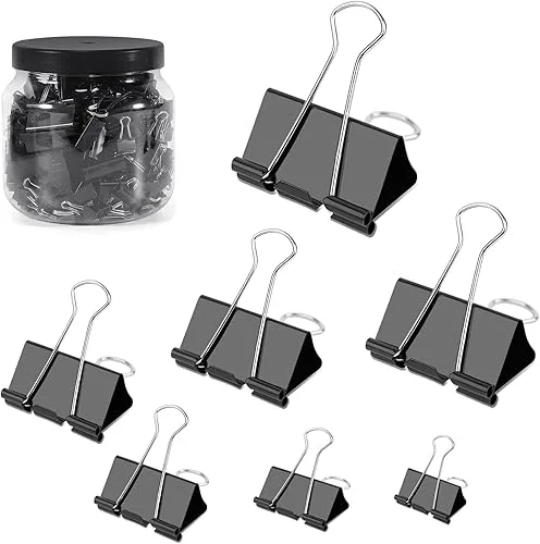 Ufmarine 200 Pcs Binder Clips Assorted Size, Paper Clips for Office, Extra Large, Large, Medium, Small, Extra Small and Mini