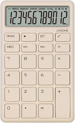 UNIONE Pocket & Desktop Beige Calculator with a Bright LCD, Dual Power Handheld Desktop. Color. Business, Office, High School