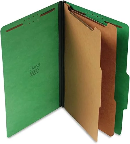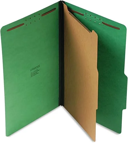 Universal UNV10312 Six-Section Pressboard Classification Folders – Legal, Emerald Green (10/Box)