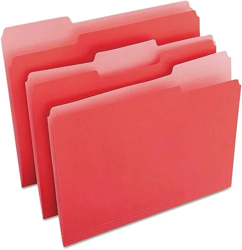 Universal UNV10503 1/3-Cut Tabs Deluxe Colored Top Tab File Folders – Letter Size, Red/Light Red (100/Box)