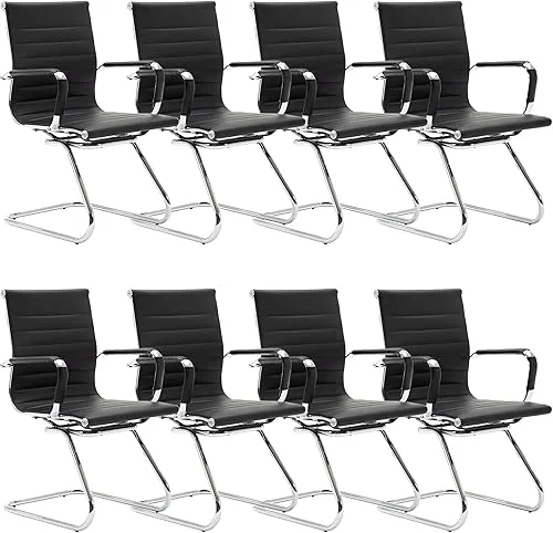 Wahson Mid Back Reception Chairs, Leather Conference Chairs for Lobby & Restroom, No Wheels – Black (8 Pack)
