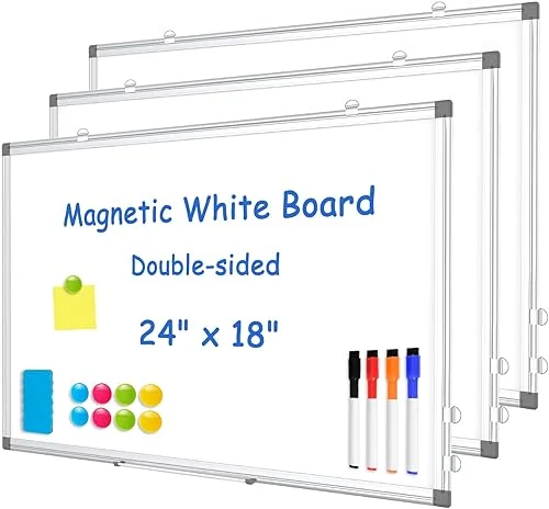 WALGLASS Double-Sided White Board, 24′ x 18′ Dry Erase Board Magnetic Whiteboard for Wall, Hanging Mounted Whiteboard Silver Aluminium Frame for Home, School, Office, Kitchen