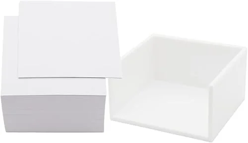 White Memo Holder with Blank Notes Cube Simple PS Notepad Organizer Dispenser 500 Sheets Non-sticky Memo Pads Set for Home Office School Supplies