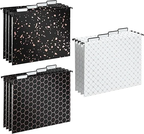 Y YOMA 12 Pack Decorative Hanging File Folders Letter Size Rose Gold File Folder Pretty Hanging Folder Organizer for Filing Cabinet Office Home with 1/5-Cut Adjustable Tabs, 3 Black Foil Design
