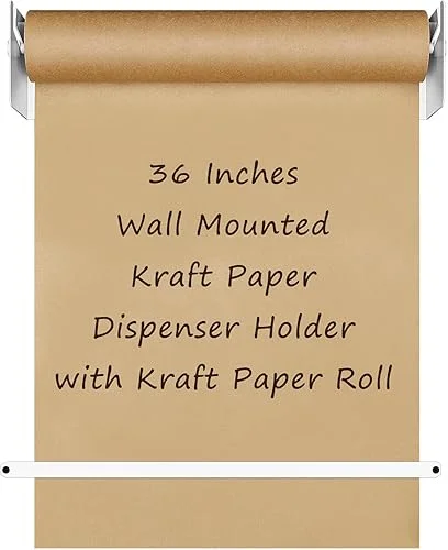 Yeaqee 36 Inches Wide Wall Mounted Kraft Paper Dispenser Holder with Brown Craft Paper Roll and Cutter for DIY Drawing Note Taking Artwork Display Wrapping to Do List