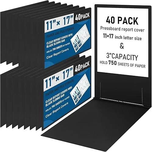 40 Pcs 11×17 Inch Pressboard Report Cover, 3′ Capacity Presentation Binder Folder with Metal Prong Paper Fastener to Neatly Bind Reports, Proposals, Transcripts and Other Documents (Black)