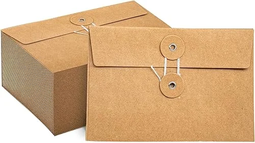 40 Pcs Kraft Paper Envelopes with String Tie Closure Project Pockets Document Organizer for Office Folder Booklet Bag, 4.53 x 6.7 inches (Brown)