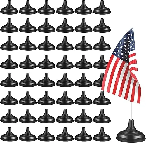 48 Pack Mini Desk Flag Stands Black Small Base Table 1 Hole Desktop Flag Stand Holds 5 x 8 Inches Stick Flags for Party Office Desk Centerpiece Country Company Sports Team