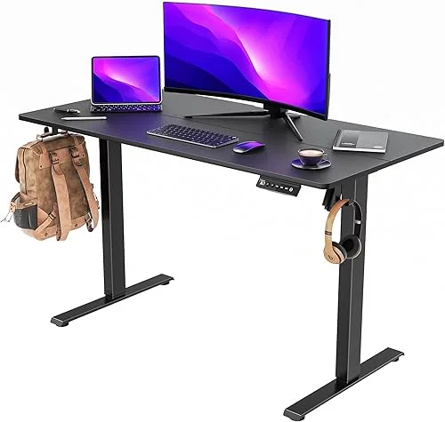 48 x 24 Electric Standing Desk Adjustable Height 4 Memory Preset, 4 Wheels, 2 Headphone Hook, Home Office Desk, Stand Up Sit Stand Desk Computer Table, Splice Board Black