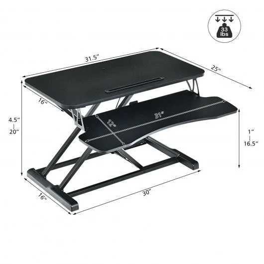 Converter Adjustable Riser Stand Desk with Keyboard Tray-Black