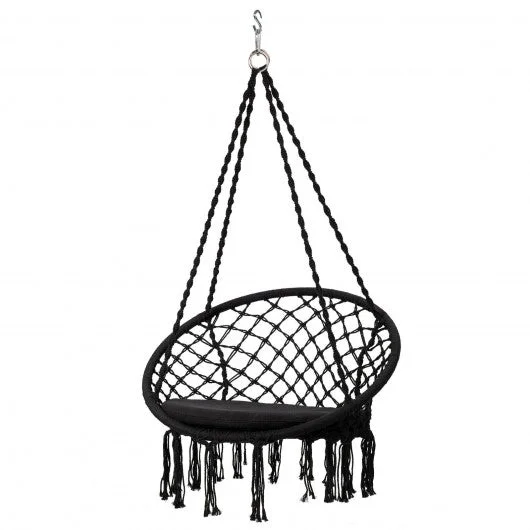 Macrame Cushioned Hanging Swing Hammock Chair-Black