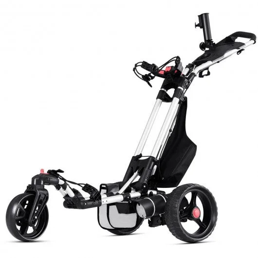 120 W Foldable Electric Golf Push Cart with Umbrella Holder