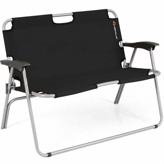 2 Person Folding Camping Bench Portable Double Chair-Black