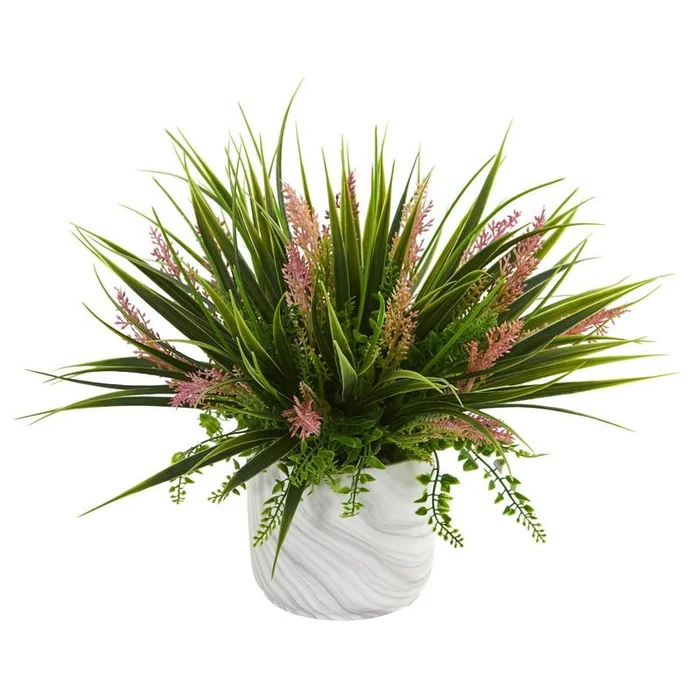 Grass and Fern Artificial Plant in Marble Finished Vase